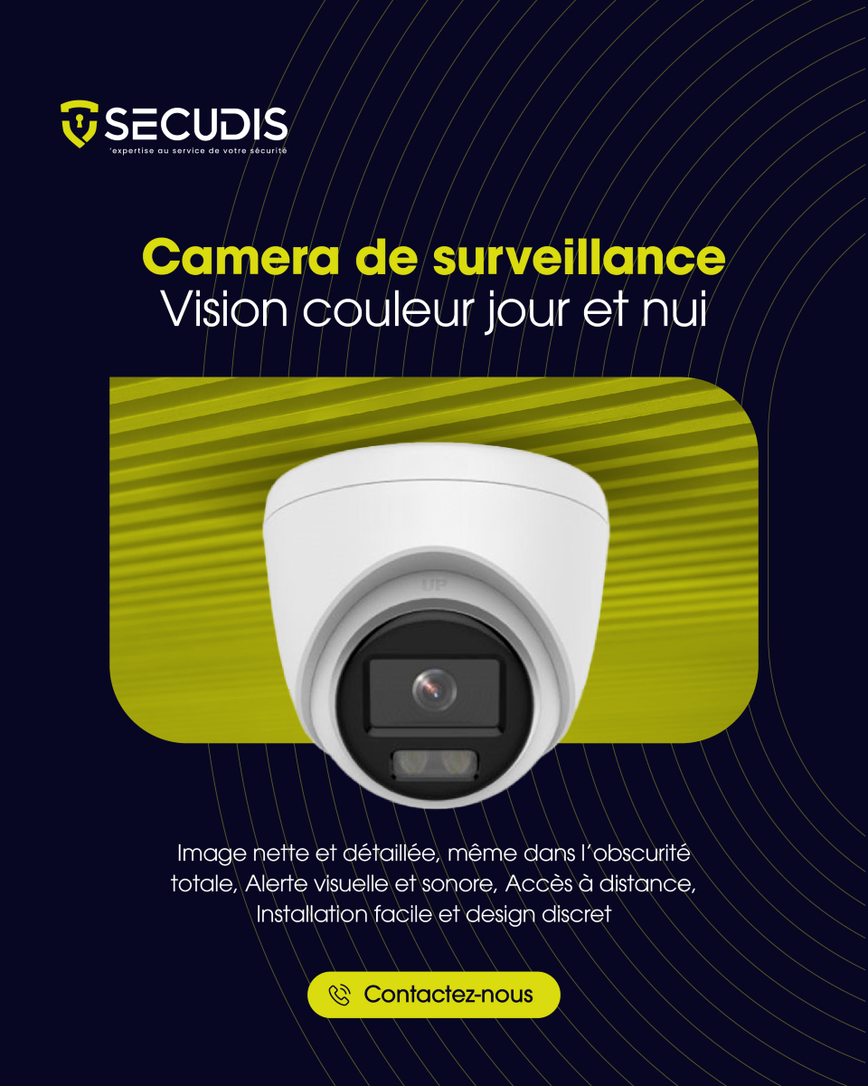 Caméra de surveillance couleur HD jour & nuit – Vision nocturne, alerte sonore et accès à distance | SECUDIS