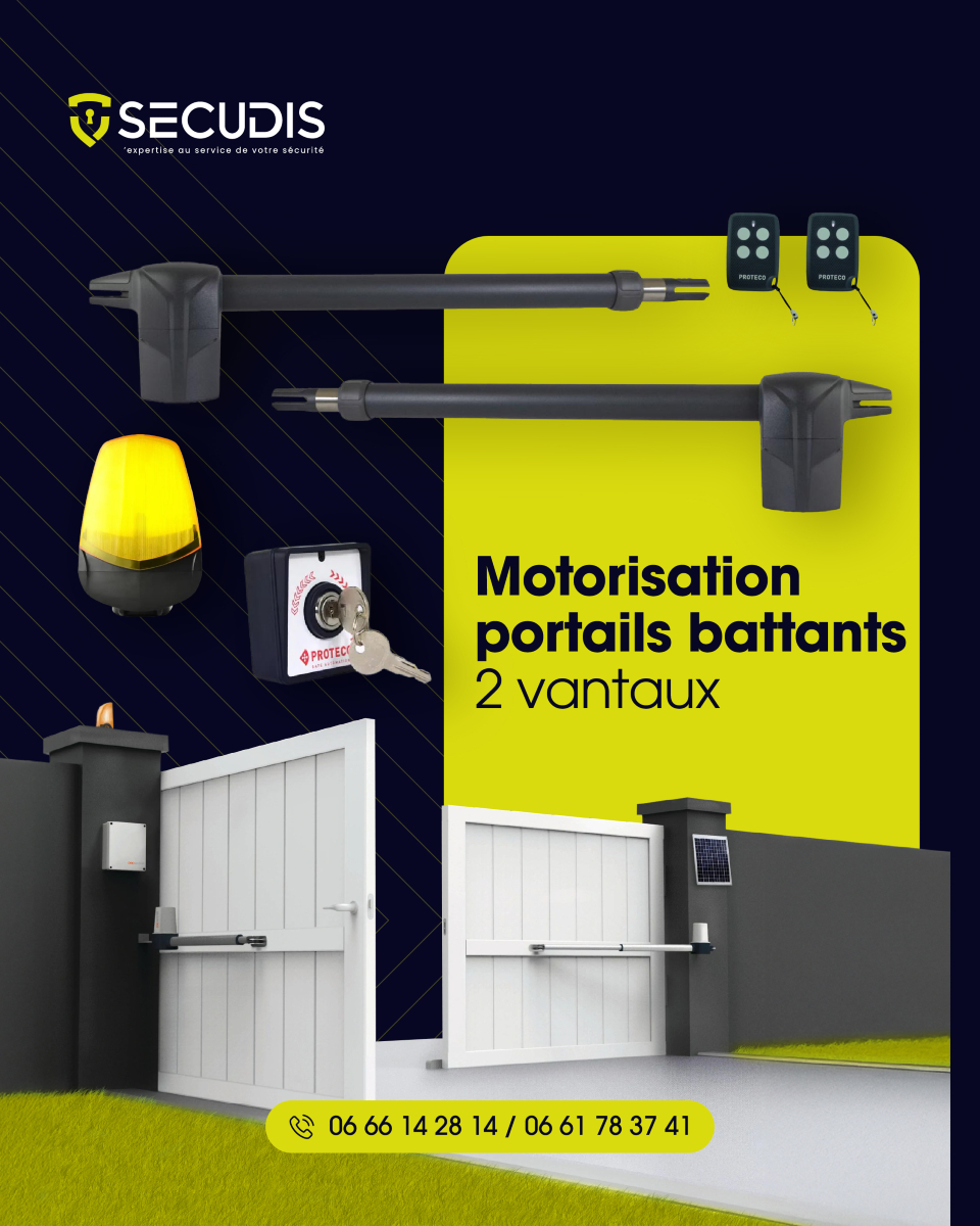 Kit motorisation portail battant 2 vantaux – ouverture automatique avec télécommande | SECUDIS